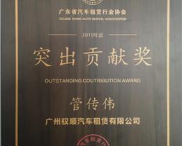 广东省汽车租赁行业协会2019年度突出贡献奖
